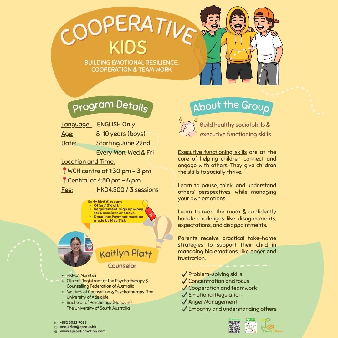 Cooperative Kids is a small-group program designed to support children aged 6–8 as they develop independence, friendships, and emotional regulation skills.
