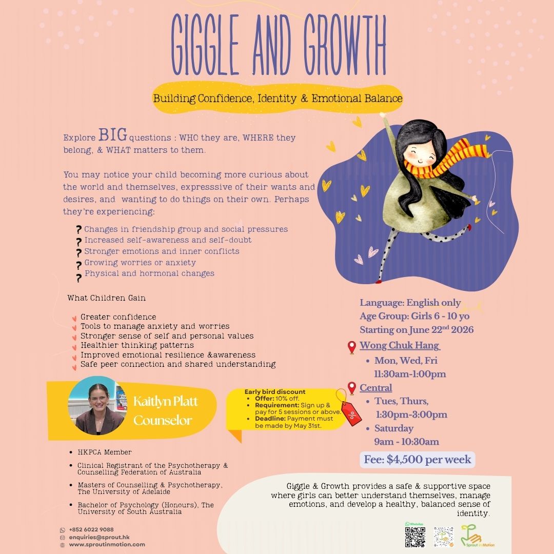Giggle & Growth is a supportive small-group program for girls aged 8–10 who are beginning to develop a stronger sense of identity, friendships, and emotional awareness.