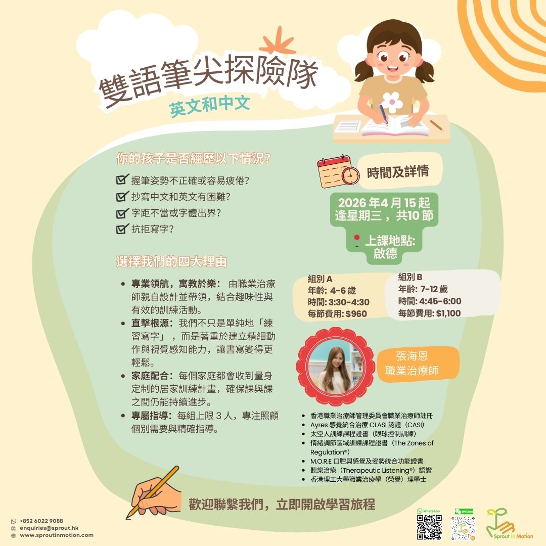 更好的握筆力、壓力控制和耐力,以完成書寫任務