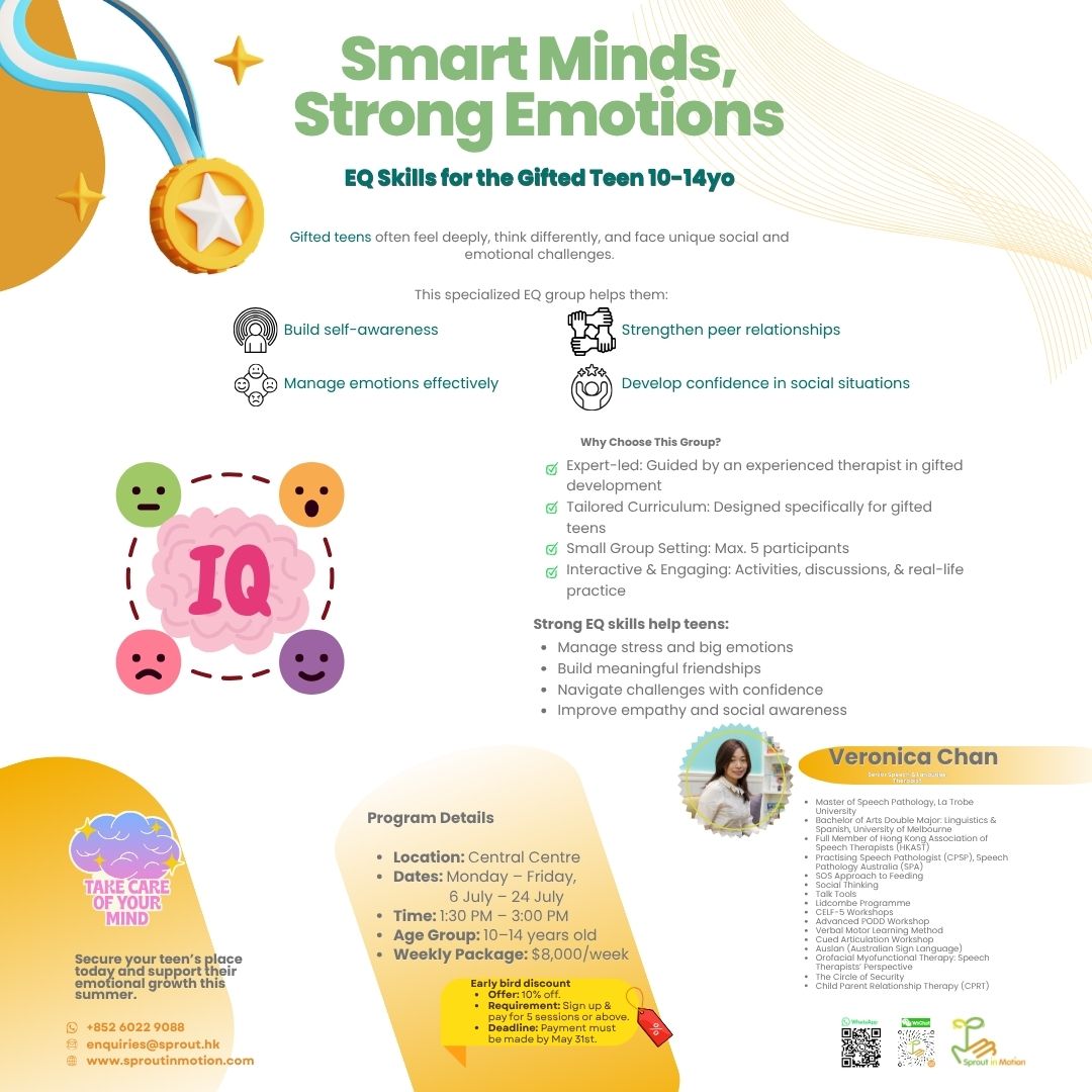 「資優情緒智商分享者」是一個專門為資優青少年設計的情緒智商(EQ)小組,旨在幫助他們更好地了解自己,建立有意義的人際關係,並在社交和情感方面全面發展。