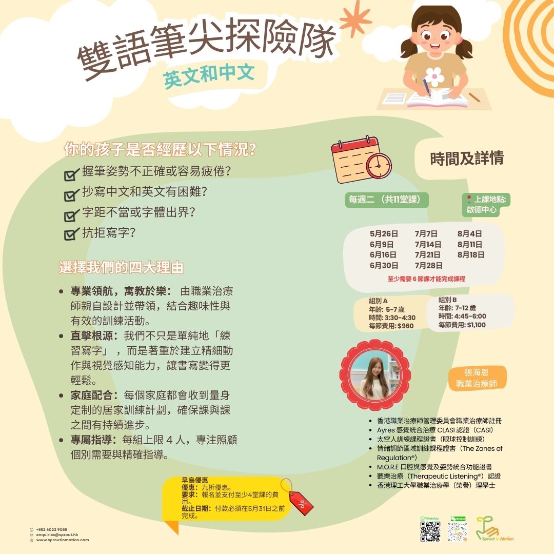 大多數小組都提供英語和粵語兩種語言的支持,幫助孩子們感到舒適、被理解和自信。