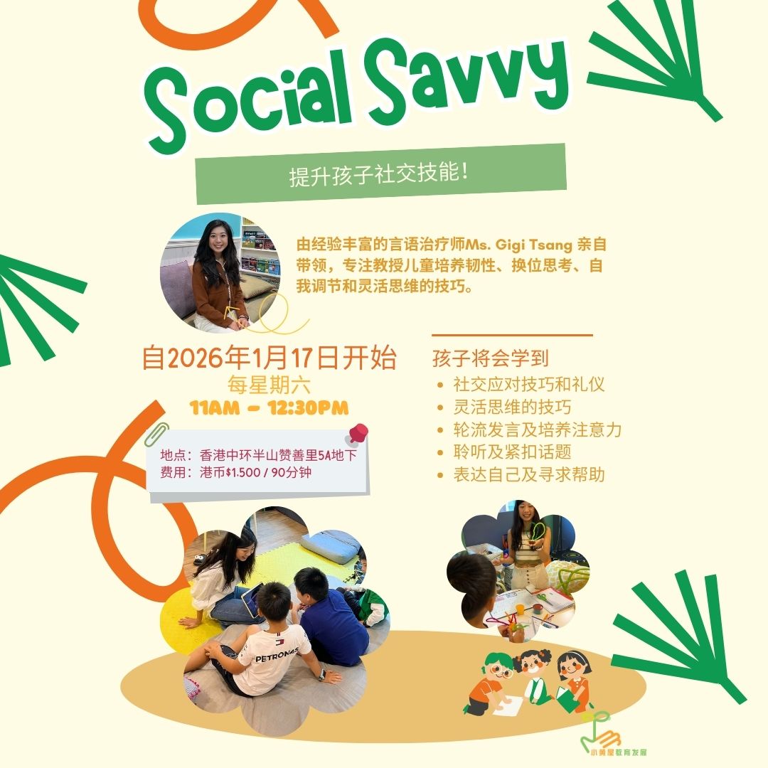 通过有趣的动作活动,帮助孩子提升专注力、自我调节和灵活思考能力!这个小组课程专为 5–7 岁儿童设计,支持他们建立关键的执行功能技能,增强在学校和日常生活中的自信与表现。