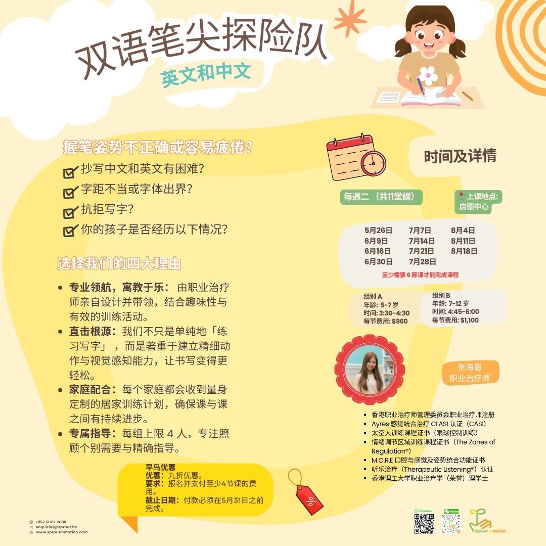 由专业言语治疗师和职业治疗师主导的课程,专注于提升沟通能力、书写技巧及感官整合。