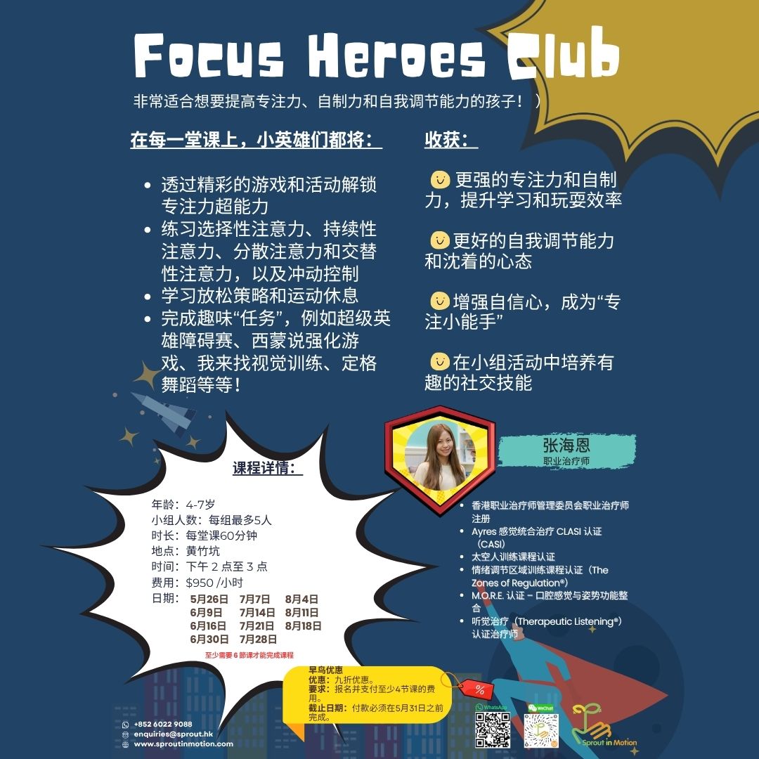 以 Zones of Regulation™ 框架设计的“训练营”,专注于提升专注力、组织能力及情绪调节。