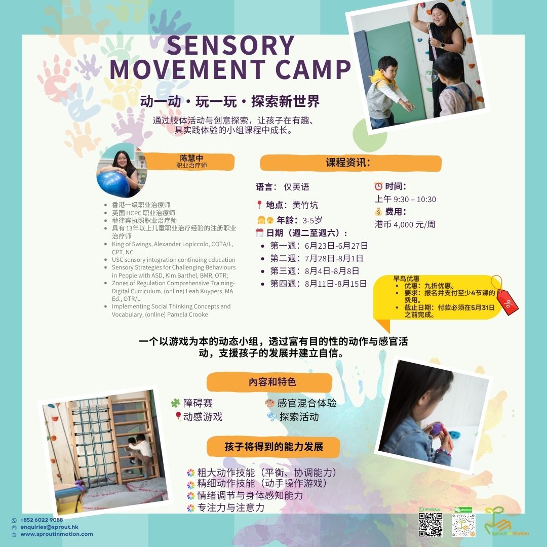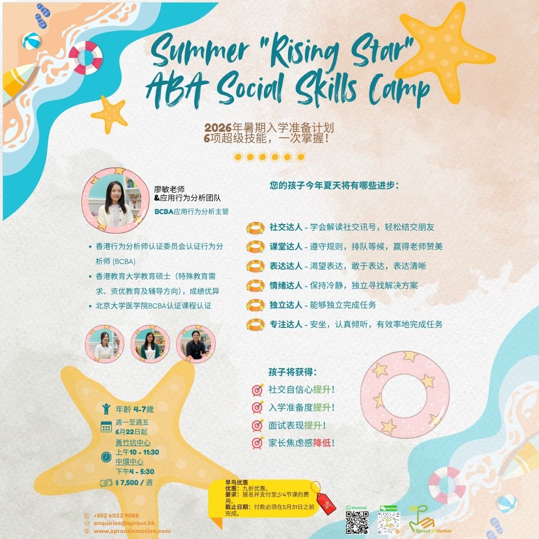 加入我们由行为治疗师、辅导员、言语治疗师和职业治疗师组成的跨专业团队,共同开启充满探索的夏日旅程。我们以实证为本的课程欢迎所有 3 至 16 岁的儿童和青少年参加,并提供一个支持性的环境,让每位小孩都能发挥所长、建立自信、尽情成长。